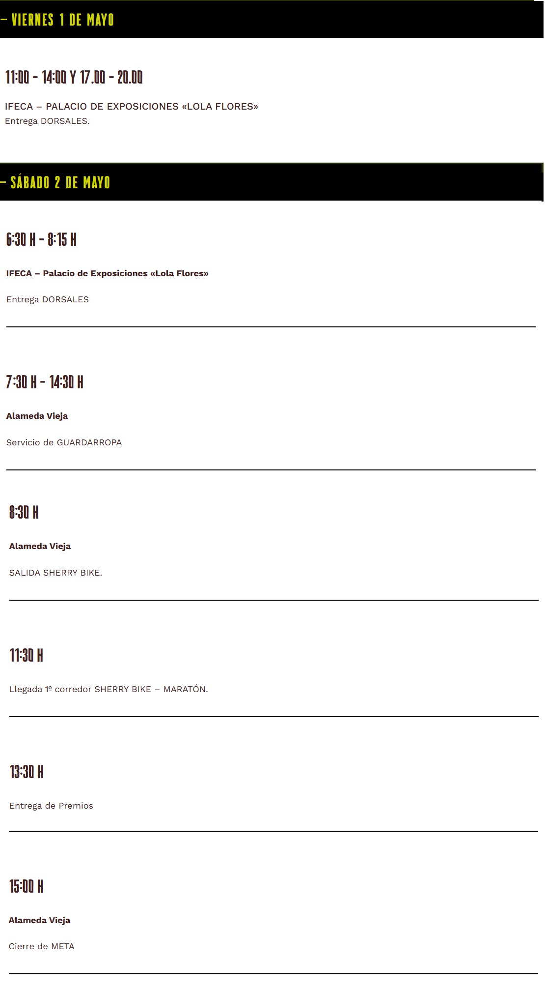 El Sherry Bike Maratón tendrá una distancia de 67,6 kms, con salida el sábado 2 de Mayo a las 8:30h desde la Alameda Vieja. Los primeros kilómetros son un recorrido urbano por las principales calles de la ciudad antes de adentrarnos en el mar de viñas del Marco del Jerez.